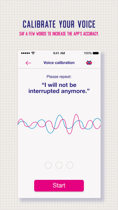 Voice recognition is the main mechanism. Woman Interrupted App uses the smartphone to detect and help reduce Manterrupting. It’s necessary to allow the app to use the microphone on your device. The ‘Women Interrupted’ app, available on iOS and Android, is able to track the frequencies of recorded voices and establish how many times voices interfered and women are talked over. Once this has been counted, the user receives a customized diagram with their results, ready to be shared on social media. The conversations are not recorded through the app. Everything goes directly from sound to data, by sampling analyzing the voices and not recording them.