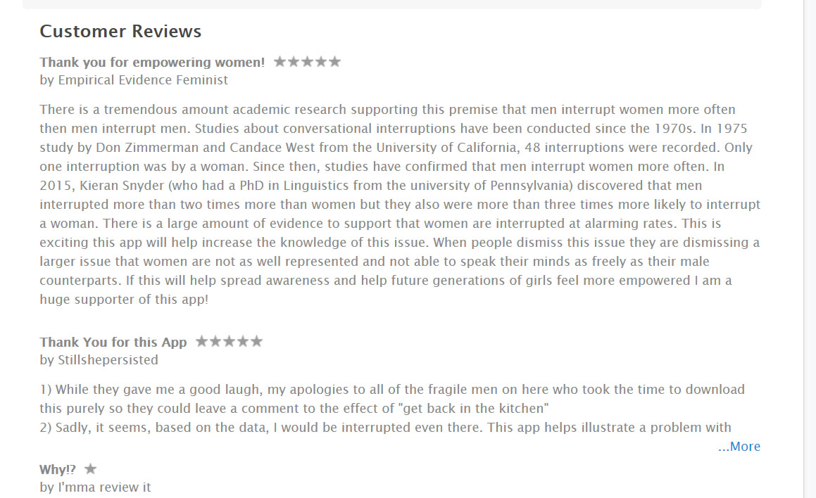 The app can be used by men too. Promoting the idea of equality, men can make use of the app too, and find out if they are in situating of Manterruption. Maybe without even realizing it.