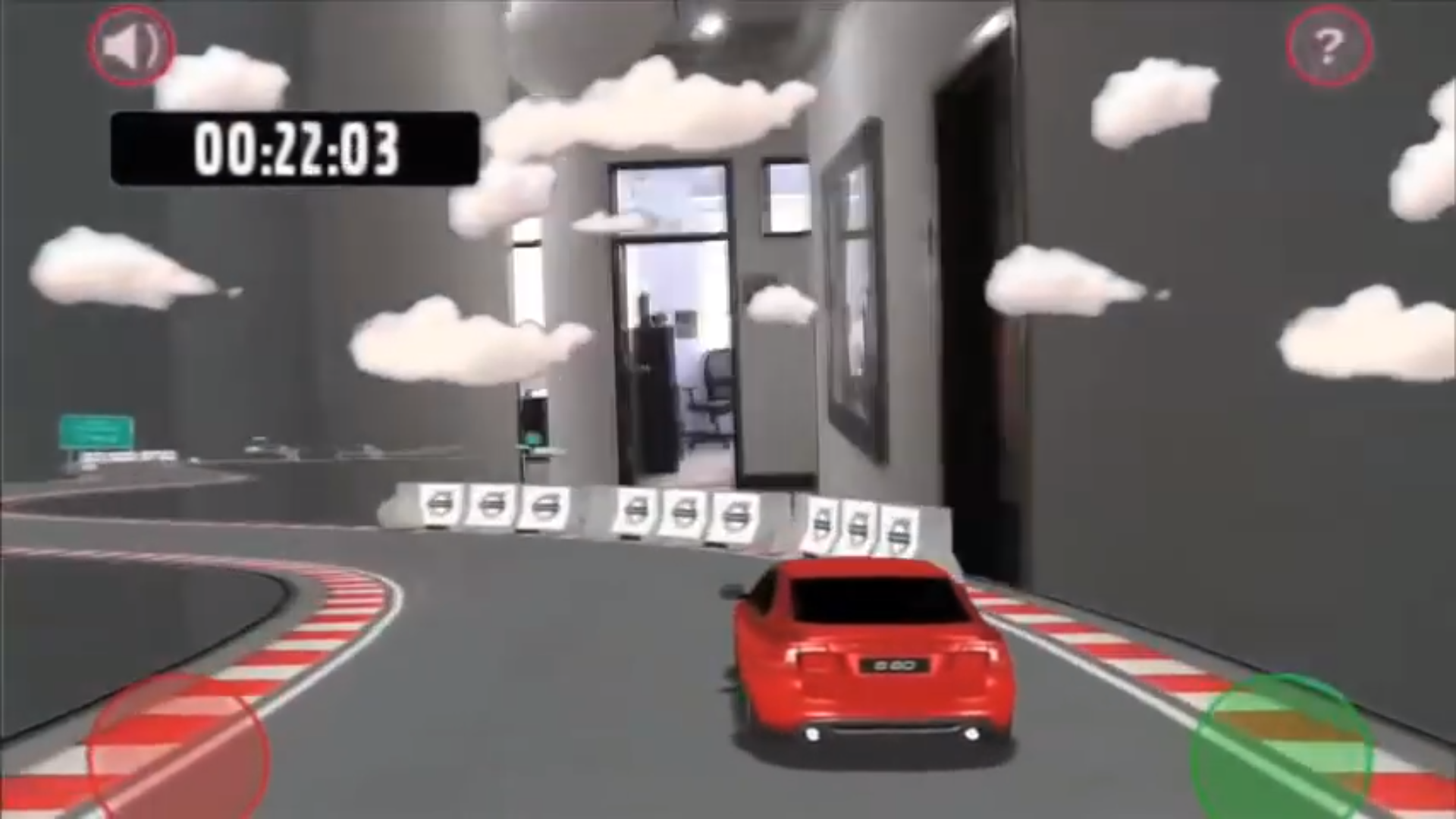 The NFS mode of Volvo S60 through Augmented Reality Driving Game. Your office, kitchen or living room as a rally arena.